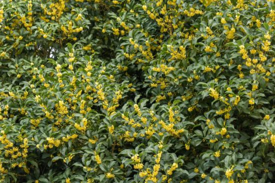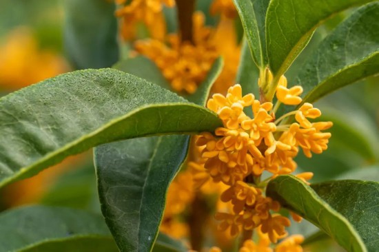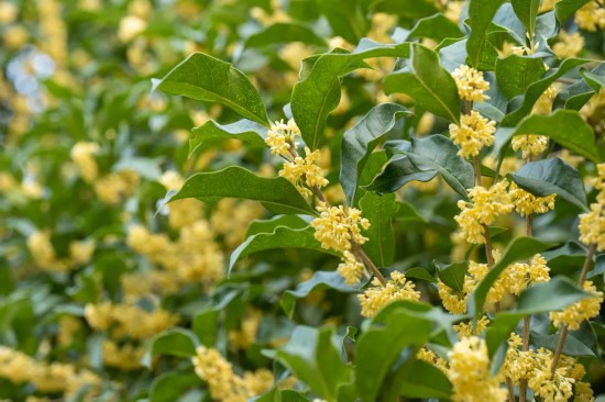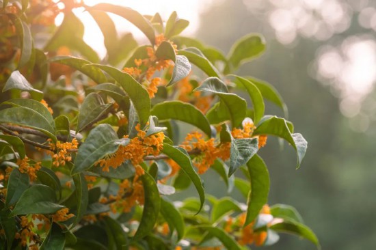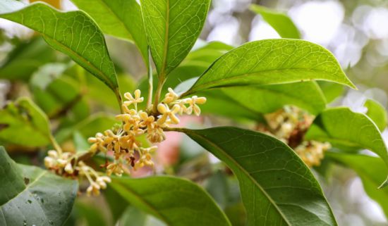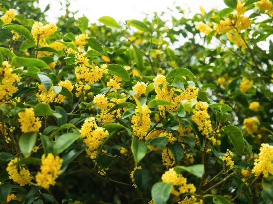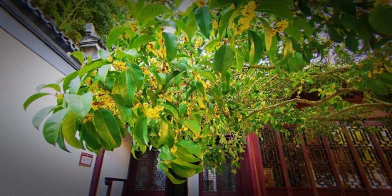 桂花沒有其他傳統名花顯現的花色或花容,唯有溫柔、恬靜的姿態。白色的銀桂,黃色的金桂,橙紅色的丹桂,微小而又精致的花朵一簇一簇從墨綠的葉叢下探出頭來,幽靜之處自得人心。