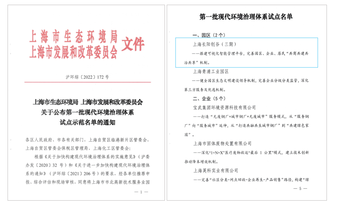 優秀!長陽創谷獲評首批上海市現代環境治理體系試點示范單位