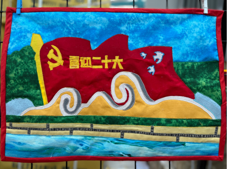 習近平總書記所作的報告提出,要深化工會、共青團、婦聯等群團組織改革和建設,有效發揮橋梁紐帶作用。近日,嘉興路街道婦聯特色品牌“女紅坊”的志愿者們,用針線縫制出一幅幅精美的布藝壁飾作品,表達她們對黨的熱愛和對未來美好生活的期待。