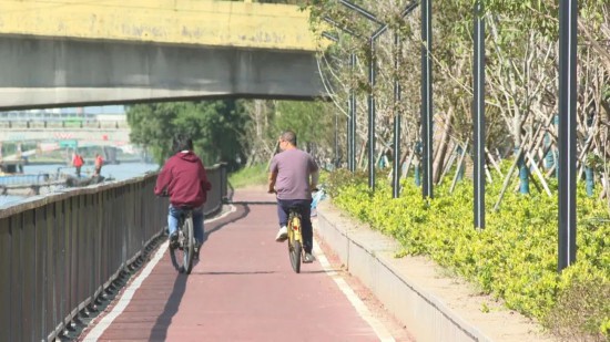 濱水綠帶項目包含新建護岸、跨支河橋梁、人行步道、騎行道、景觀綠化等設施,一期3.8公里長的項目竣工后,獲得了居民的廣泛好評。近日竣工的二期項目長7.5公里,內容延續一期項目的同時進行了優化。其中,最值得一提的是構建了極具特色的生態慢行系統,河道兩岸全線新建兩條慢行通道,分別為人行步道和自行車騎行道,實現“人車分離”。兩條慢行通道互通,周邊增設了配套景觀綠化、欄桿、燈光、休閑座椅等設施。