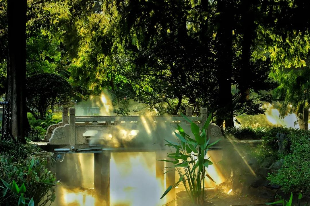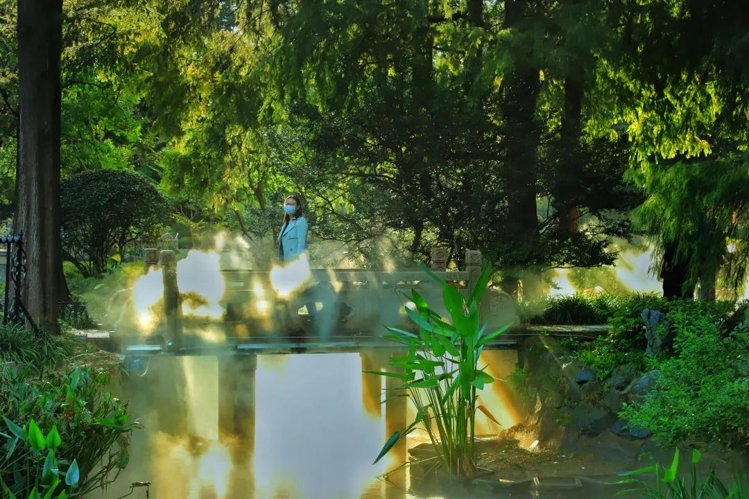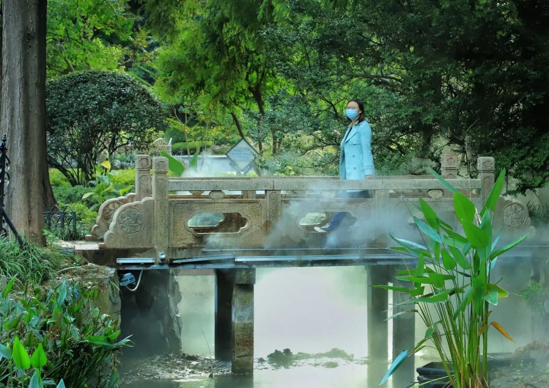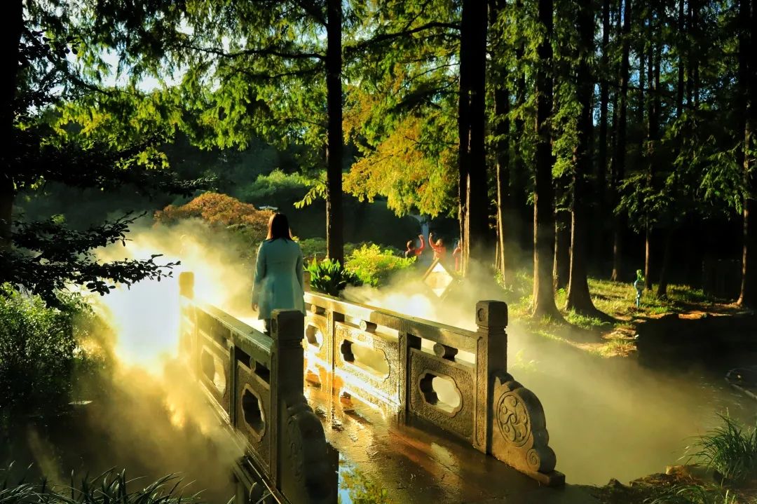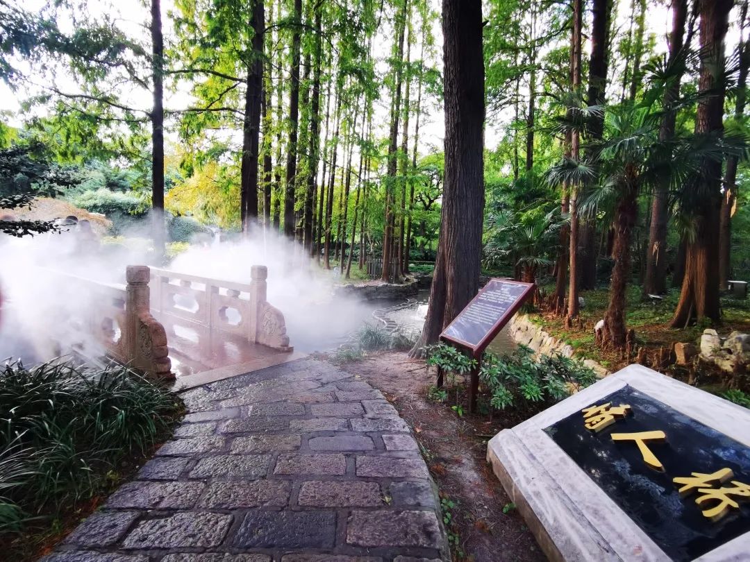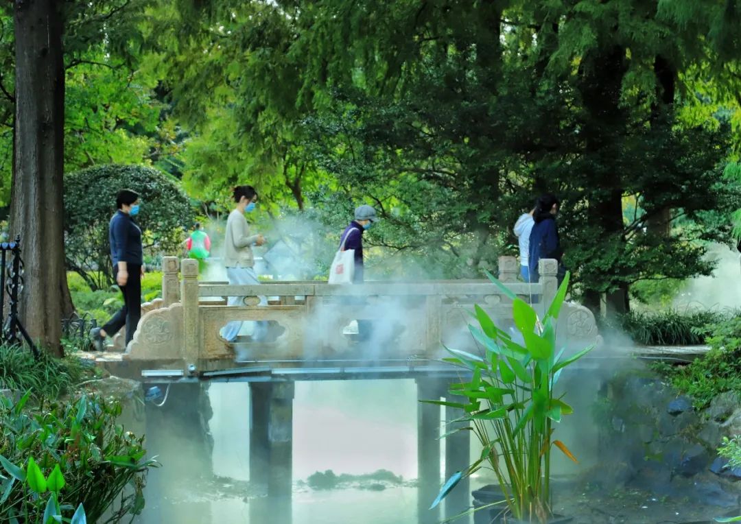 據中山公園相關負責人介紹,早在2013年橋的兩側就裝上了人造噴霧系統,讓公園靜態的山水畫面有了靈動的霧氣,縹緲的霧氣在林間、橋下飄動穿梭,讓人仿若置身于仙境。后因各種原因,噴霧暫停使用。