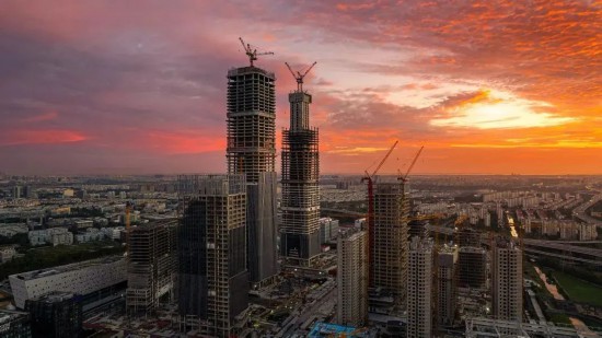 張江“科學之門”東塔核心筒結構封頂,320米塔樓雙雙“登頂”
