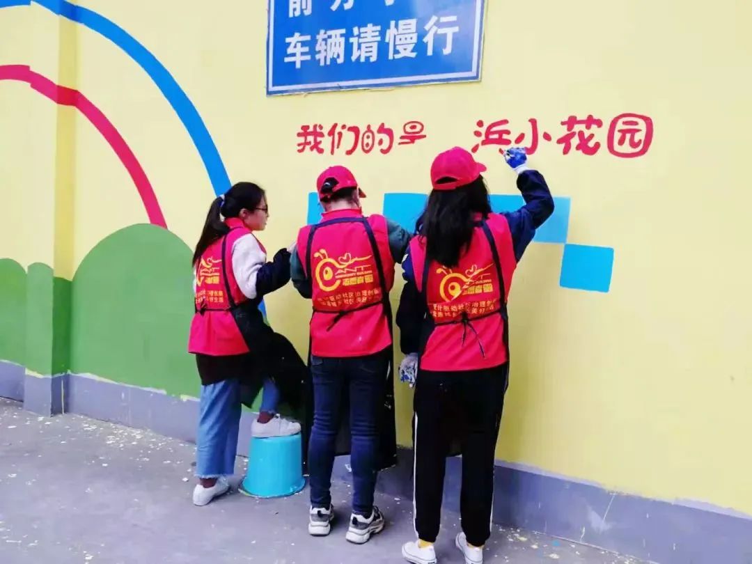 此外,小花園正對面的一面略顯單調的圍墻,也成為微更新的對象之一。江浦路街道組織昆明學校的學生們,通過現場彩繪的形式,將圍墻打造成了一面充滿藝術氣息的彩繪墻。