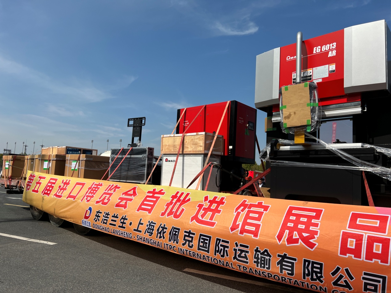 10月24日,第五屆中國國際進口博覽會首批展品飄洋過海,運抵“四葉草”國家會展中心(上海)搭建布展。進博時間再度開啟。