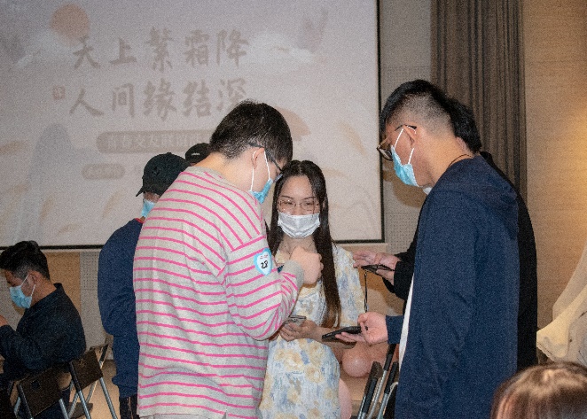 當天,共有80余名青年職工參與了現場活動,在擊鼓傳花、搭建紙杯塔、emoji接力、穿針引線、緣分對對碰等一系列項目活動,青年員工逐漸熱絡起來,消減了陌生感。最終,6對嘉賓現場成功牽手。