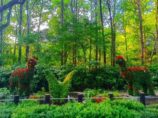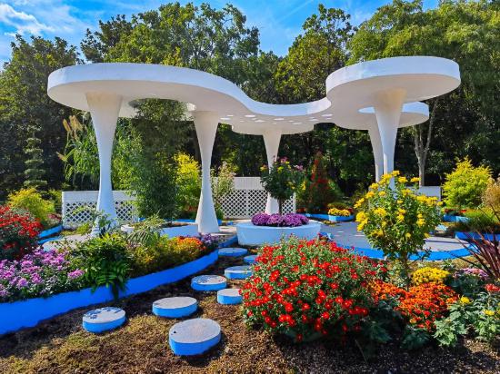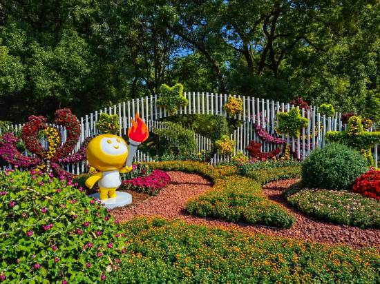 室外景點展區位于原花藝館位置,將依托森林背景結合賞菊季主題布置8組室外景點,以菊花為主要造型材料,采用綠雕、花境等形式,打造豐富多樣的菊花景觀,充分展現人民城市建設發展取得的豐碩成果和日新月異的城市變遷。