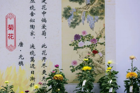將菊花詩詞、菊花繪畫、菊花圖譜、菊與名人、菊與生活等文化科普知識以科普銘牌、展板介紹、趣味故事等內容結合菊花造景進行展示,以獨特的視角闡釋底蘊深厚的中華菊文化藝術。