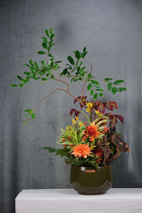 展區位于游客服務中心,共展示20件精美菊花插花藝術作品。展品以菊花作為主體題材,結合中國傳統插花瓶、籃、盤、碗、筒、缸的六大器皿,充分展現海派插花的“自然、秀雅、時尚、多元”的特色,讓老百姓更深入體驗金秋賞菊季精致、典雅的藝術文化氣息。