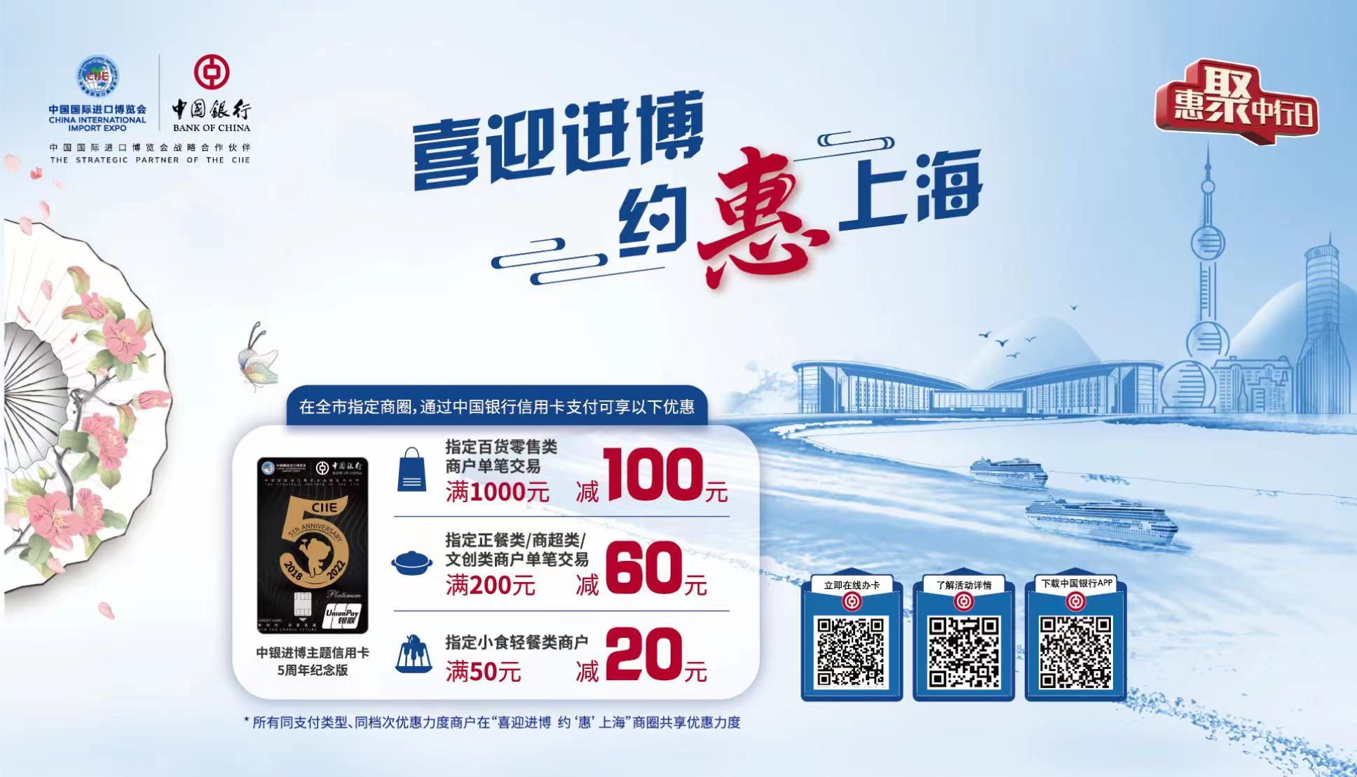 5年來,中行上海市分行持續深耕“喜迎進博 約‘惠’上?!边M博主題商圈信用卡優惠活動,覆蓋陸家嘴、大虹橋板塊、徐家匯、靜安寺等16個核心地標商圈,210個品牌,約880家門店。同步打造“線上瀏覽、線下消費”的優惠商圈地圖、“線上下單、線下領取”的進博文創小程序滿減活動,幫助客戶實現更加便利快捷的消費體驗。