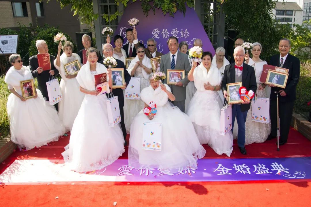 2020年重陽節這天,小區120對金婚老人,或身著婚紗,或秀步紅毯,他們交杯香檳、共享蛋糕,在“樂伯攝影沙龍”團隊的助力拍攝下,留下了人生中最美好的一份回憶。這便是綠八社區舉辦的“2020愛你愛妳金婚盛典”活動。