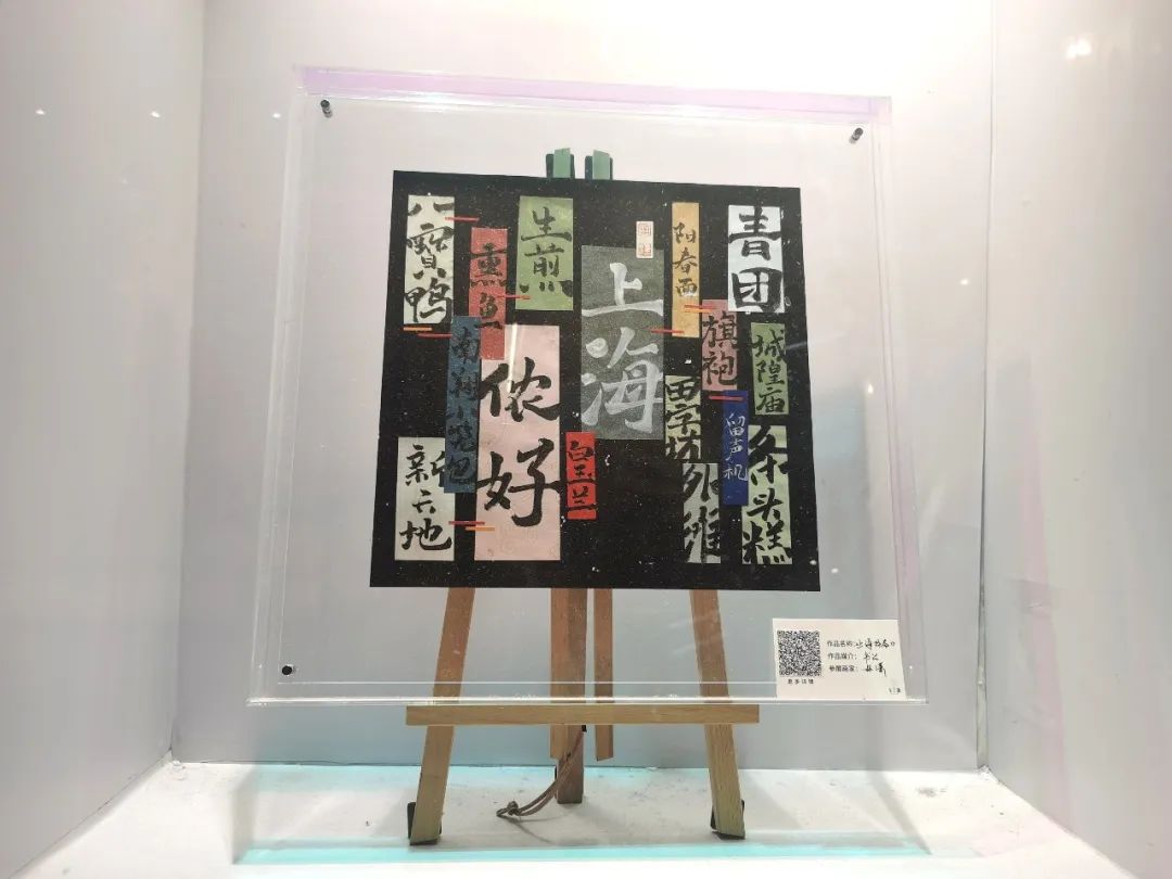 其中,一幅名為《上海標簽》的藝術作品,以書法和拼貼的形式將具有上海特色的美食、地標和老物件等詞條融合在一起,讓人不禁想起那一幕幕生活氣息十足的畫面。另外,展出的《守滬·白玉蘭》也十分引人注目,這幅出自小畫家之手的作品,展現了青少年眼中的上海和生活。