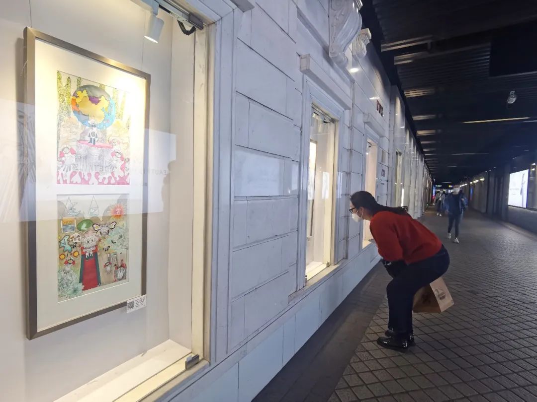 日前,地鐵2號線中山公園站漫選自在島通道變身藝術長廊,展出以“愛生活 愛上?!睘橹黝}的繪畫藝術作品,吸引了不少行人駐足觀看、拍照打卡。