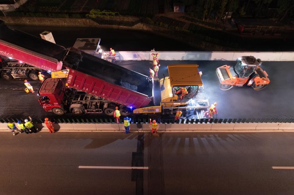 內環高架設施提升及功能完善工程項目(四平路—政本路)歷經67天的施工,盡量減少交通影響,對中心城區快速干道設施進行改造。