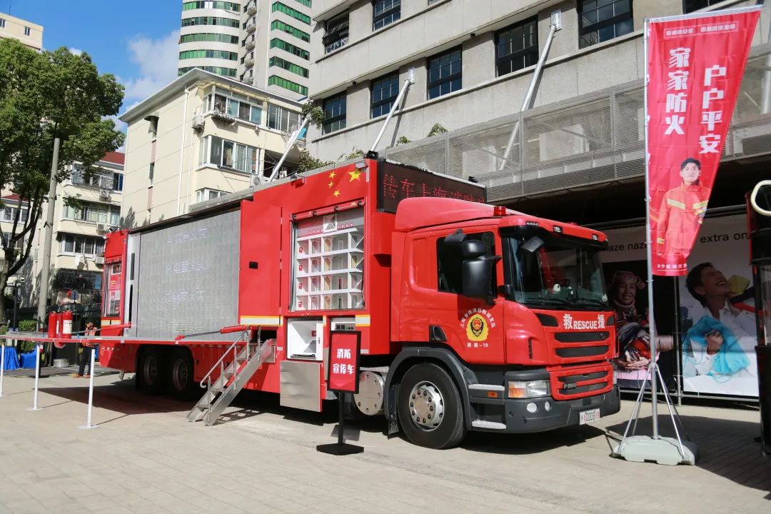 “這臺是全新上線的多功能消防勤務車,它集指揮、宣傳等功能為一體?!爆F場停放著的多功能勤務車吸引了不少市民的目光,據講解人員介紹,這臺勤務車搭載著通訊、攝像設備,可為消防指揮和調度工作提供有力支持,車身自帶的戶外全彩LED屏幕,可在行駛過程中播放消防科普視頻,打通消防宣傳的“最后一公里”,讓消防知識“流動”起來。