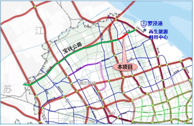工程位于寶山區工業園區,西起滬太路交叉口,東至潘涇路交叉口,全長約2.4千米。