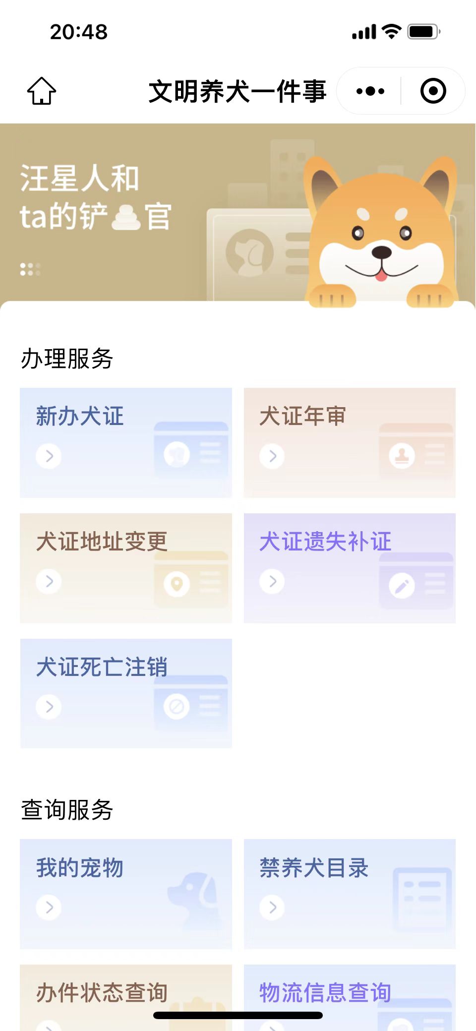 2022年11月1日,經過前期試運行,上海市公安局會同市農業農村委、市大數據中心正式推出“文明養犬一件事”便民措施,只要材料齊全、符合要求,市民群眾只需在“隨申辦”輕松操作,幾分鐘便可辦好,足不出戶就可以體驗便捷化的政務服務。