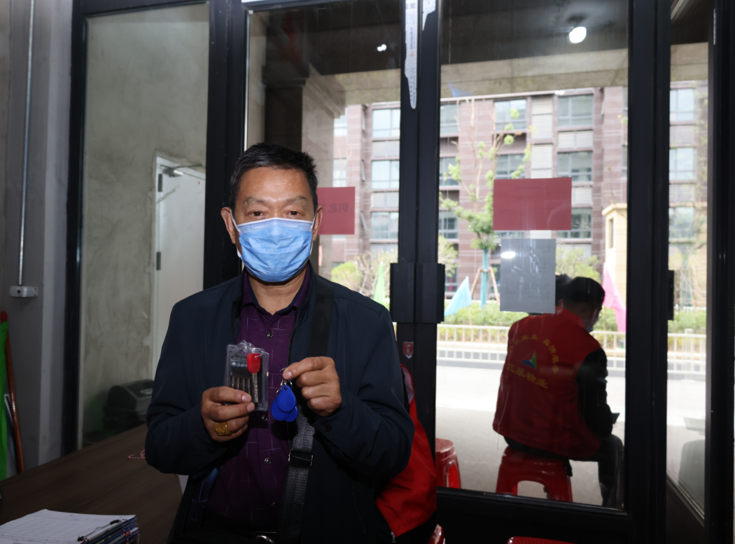 海璟馨園第一位拿鑰匙的業主戚老伯,帶著兩個兒子前來辦理相關手續,他告訴記者,“成為第一位拿鑰匙的業主,對我們全家來說很有紀念意義!”