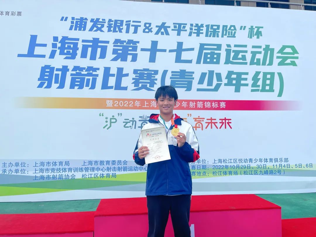 在射箭比賽(青少年組)暨2022年上海市青少年射箭錦標賽中,來自虹口實驗學校九年級的學生趙宇軒,雖參加射箭訓練只有2年多,但他先是在周六的40米雙輪比賽中獲得個人第八;之后,在周日的30米雙輪比賽中,趙宇軒在落后的情況下平穩好情緒,最后一箭射出10環,最終以1環的優勢險勝對手,拿下一枚寶貴的金牌。