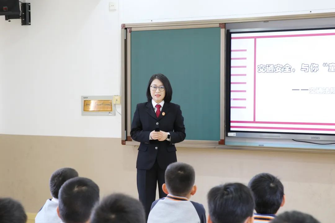 管西鳳從這些和同學們日常生活息息相關的問題入手,引出相關交通法規的介紹和解釋。她還結合先前的互動游戲,對各種交通標志進行重點介紹,加深同學們的印象。