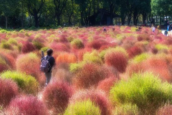 市綠化市容局介紹,在世紀公園、花開海上生態園等地,火紅地膚即將進入最佳觀賞期。一起來看看↓