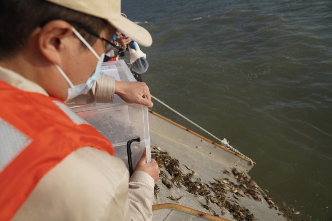“在增殖放流前,我們多次與崇明區政府相關部門咨詢增殖放流相關政策和要求,綜合考量苗種繁育時間和苗種存活率影響,并結合崇明區多年放流實踐和效果評估,確定了此次增殖放流的方案?!睋W上海建設咨詢公司崇明輸變電線路工程項目經理陳險峰介紹,此次放流的胭脂魚是國家二級保護野生動物,中華絨螯蟹具有重要的經濟價值,雙齒圍沙蠶被譽為“萬能餌料”,此三種生物可消除過量的氮磷營養元素,對河口潮灘的沉積質污染具有重要的修復作用。放流后,部分胭脂魚會向上游游動,中華絨螯蟹將在放流水域附近濕地越冬,沙蠶將在灘涂區域定居,水域生態環境將有望取得進一步改善。