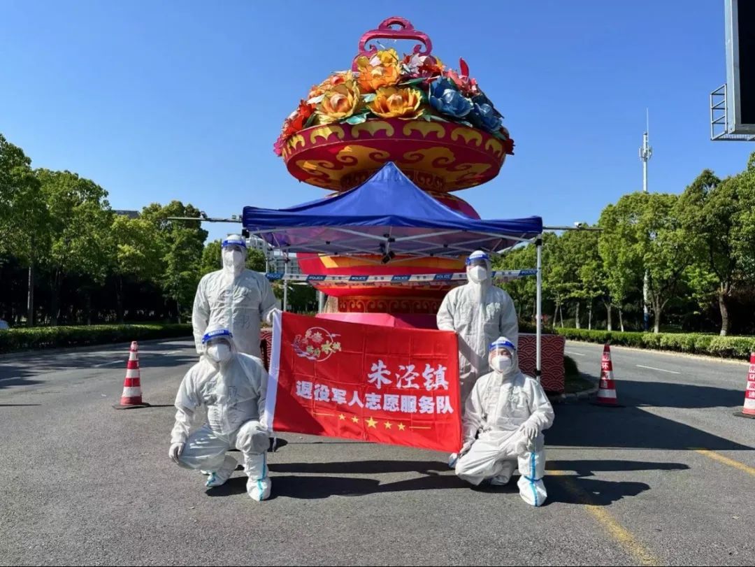 今年疫情期間,朱涇鎮退役軍人志愿服務隊主動請纓,火速增援高速道口,24小時值守,甘當“守城人”。