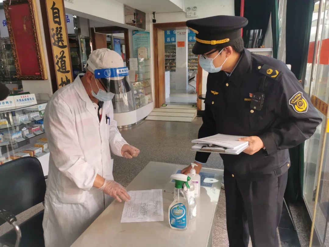 隨后,工作人員來到沿街的一家零售藥店,檢查“場所碼”掃碼、顧客測溫等情況。據介紹,針對藥店等重點經營場所,市場監管部門會每日檢查“場所碼”使用情況,對其他沿街商鋪則是定期巡查。