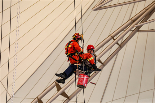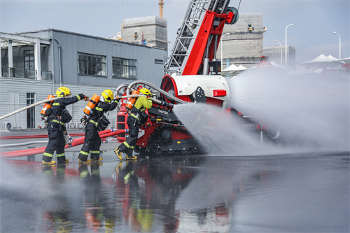 目前,黃浦區現有3萬平方米以上商業綜合體25家,5萬平方米以上商業綜合體8家,由于其體量龐大、結構復雜、多業態共存等特點,是火災防控的重中之重。此次演練針對商業綜合體火災處置的難點問題,突出新裝備、新戰法和立體滅火手段,以“實景+視頻”形式開展微站處置、內攻偵察、舉高車滅火救人、機器人滅火、大跨距消防車滅火等科目演練。