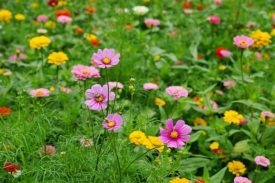 秋景正當時,共青森林公園東門5000平米以波斯菊、百日草、硫磺菊等草本花卉為主的秋季花海正在盛放。