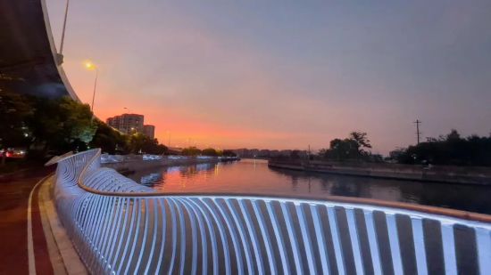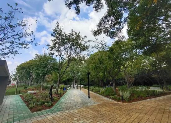 風鈴綠地緊挨蘇州河,這里是沿長寧蘇河步道健身、散步居民的必經之地,濱河步道除了觀賞公園美景,還能一覽蘇州河水景。市民們在這里漫步、健身,感受“蘇河秀帶”的蜿蜒綺麗。