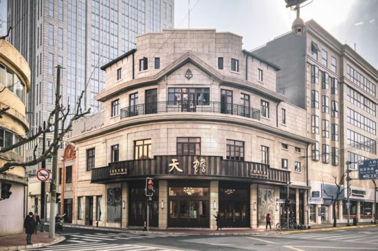 天蟾逸夫舞臺的前身為大新舞臺,始建于1925年,座西南朝東北,建筑為四層鋼筋混凝土結構。門樓外立面為米白色水刷石及仿石劃格,造型簡潔,具有裝飾藝術風格。天蟾逸夫舞臺是上海歷時最為長久、最具規模的戲劇演出場所,前身為天蟾舞臺?!疤祗浮钡妹詠?,南北名伶巨匠對這魅力無窮的舞臺情有獨鐘,以至梨園有“不進天蟾不成名”之說。