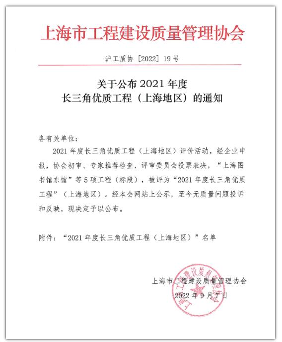 寶山這一重大工程入選2021年度長三角優質工程(上海地區)名單