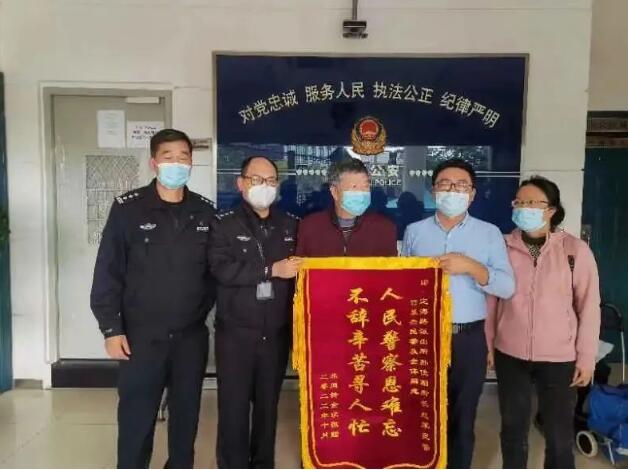 當晚22時,經過數小時不間斷地視頻追蹤,刑偵支隊傳來了好消息:一個小時前,朱老伯蹣跚獨行的身影,出現在了長陽路齊齊哈爾路路口附近。說時遲那時快,民警立即駕車趕往,在長陽路蘭州路路口民警一眼就認出了朱老伯,此時朱老伯已經體力不支,半倚靠在人行道邊,民警立即下車扶起虛弱的朱老伯,一家人最終團聚。