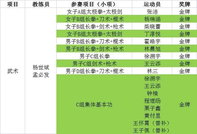 武術金牌榜
