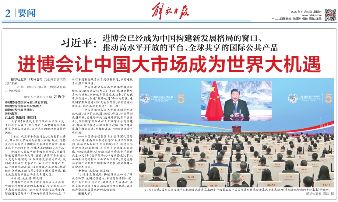 開放之約如期而至,是承諾的兌現,更是信心的加持。5年來,中國把進博會“越辦越好”的決心和信心堅如磐石,以進博會為橋梁紐帶,暢通國內國外雙循環、共享全球要素資源。