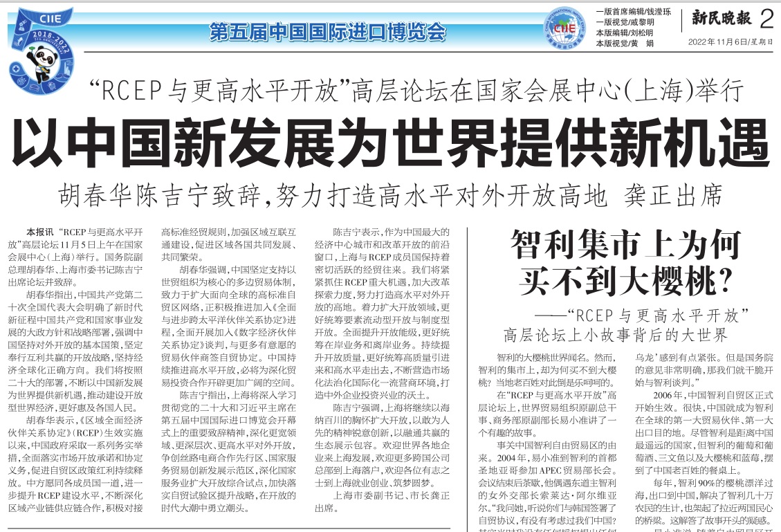 新民晚報報道“RCEP與更高水平開放”高層論壇
