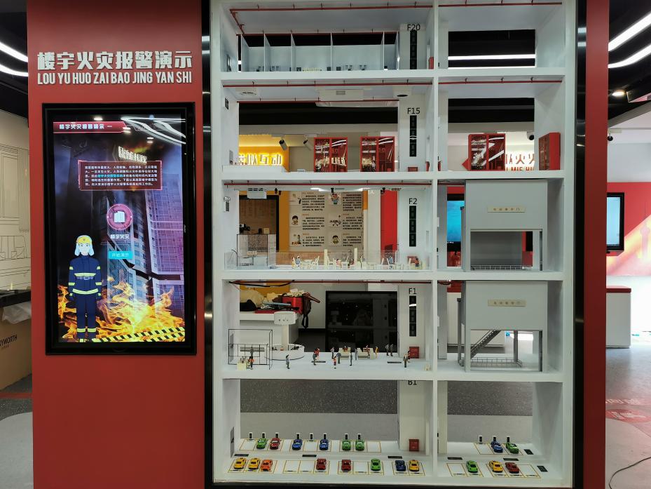 該消防體驗館設有消防裝備展廳、高層樓宇火災報警演示、社區火災隱患、電動車充電模擬充電不當、火災逃生體驗等板塊,以真實的消防案例,結合照片、VR設備、模型、影片等多媒體形式,向參觀者傳遞消防安全知識,提升消防安全意識,提高自救能力,助力營造全民學消防的濃厚氛圍。