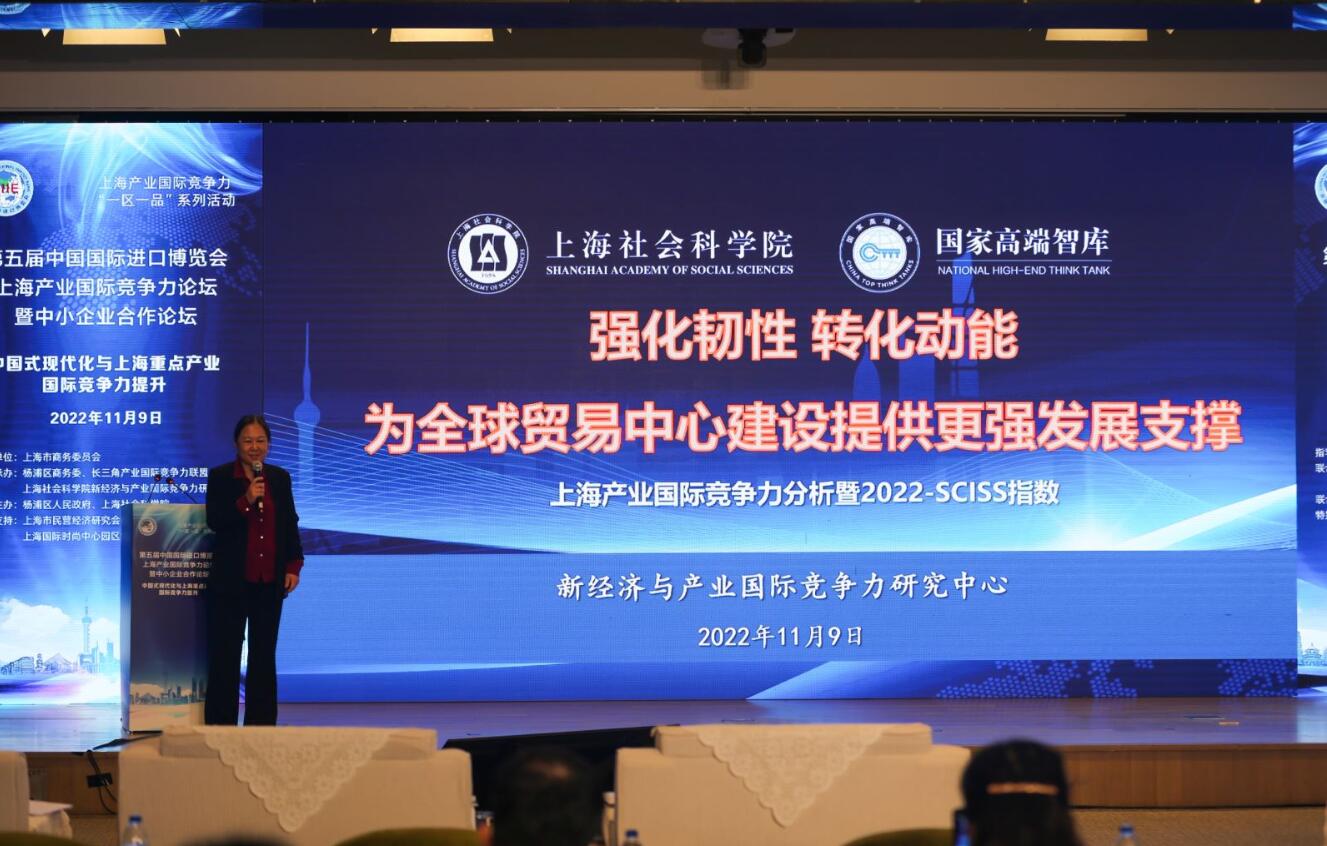 人民網上海11月10日電 (董志雯)11月9日,第五屆中國進口博覽會官方配套論壇--上海產業國際競爭力論壇暨中小企業合作論壇舉辦。會上,上海社會科學院新經濟與產業國際競爭力研究中心發布了《2021-2022上海產業國際競爭力報告》。