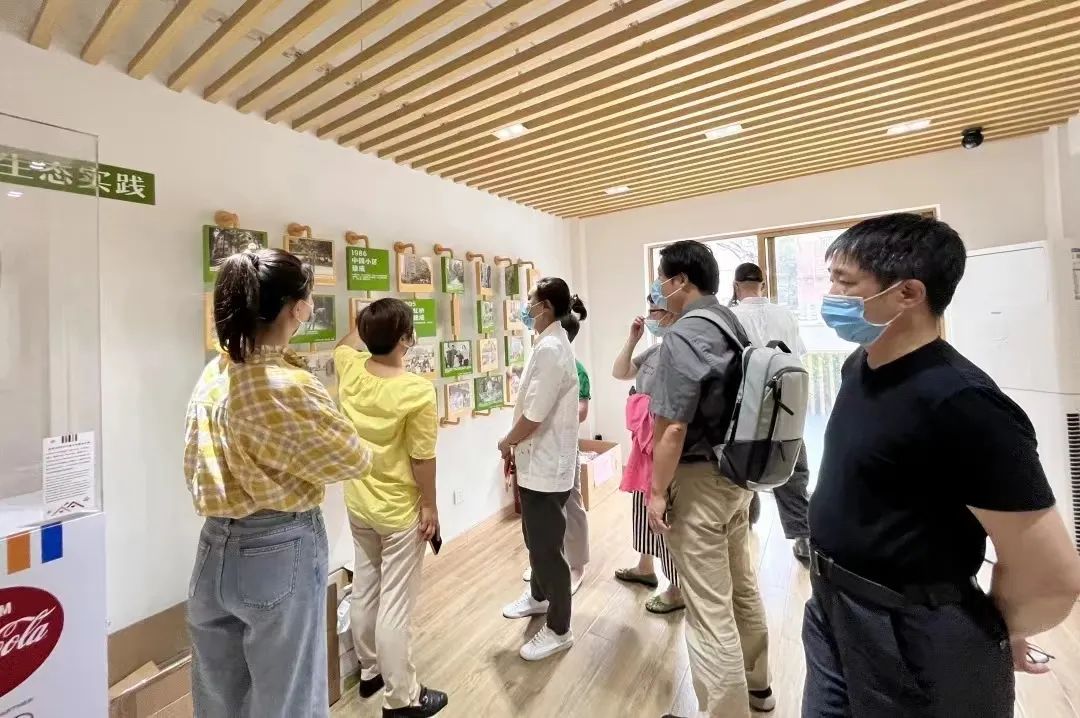 愛建居民區黨總支書記徐秀帶領虹橋小區居民參觀“愛建十景”
