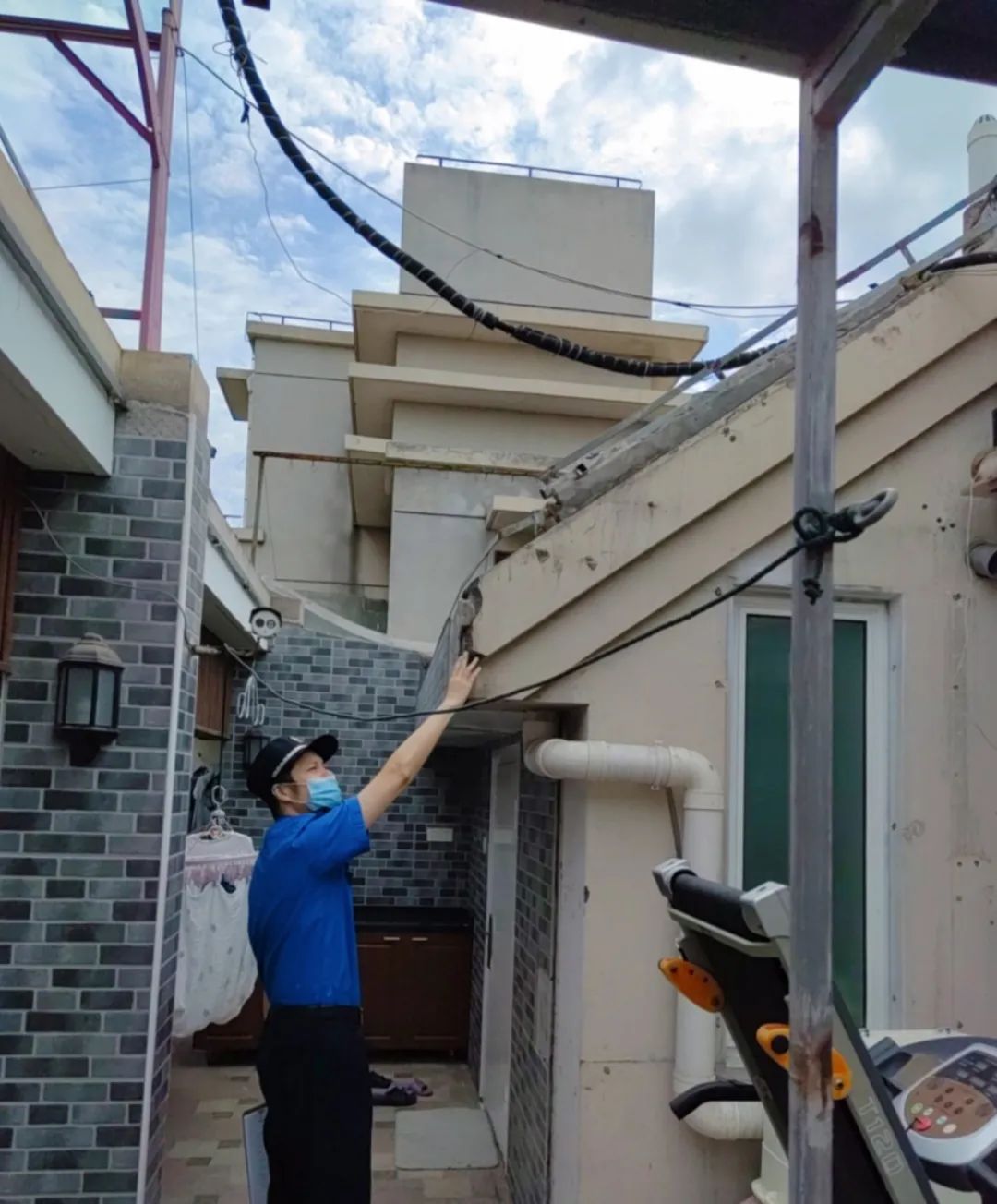除了底樓天井,居民樓頂的陽光房也是違建的常見形態之一。不久前,城管中隊同樣接到市民來電反映,桃浦路300弄某戶居民在頂樓平臺存在搭建陽光房的行為,影響小區居民安全出行。接報后,城管隊員多次走訪居委、物業等有關部門,掌握此處搭建的用處、材質等情況,并向當事人開具了談話通知書、責令改正通知書等執法文書。幾經上門走訪教育,城管隊員最終勸服當事人自主拆除違建陽光房。至此,成功消除了老百姓頭頂的“安全隱患”,小區的環境也得到了提升。