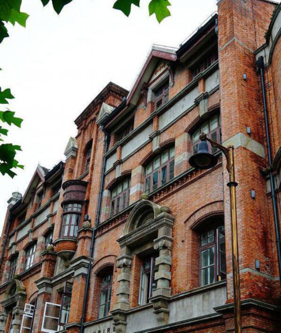 公寓建于1904年前后,主體為四層磚木混合結構,局部有鋼筋混凝土框架。清水磚墻、磚雕,是上海最早的英式公寓。