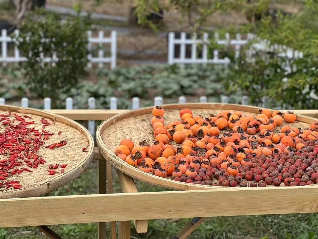 秋天是豐收的季節,走進山陽田園,滿眼都是“秋的元素”,這里有成片成片的金色稻田,為了呈現秋天的豐收,園區將秋天的元素融入景象布置中,每走一段距離就能看到柿子、棉花、稻谷、辣椒等果實晾曬在太陽下,據了解,這是一種典型的農俗現象——“曬秋”,極具地域特色。生活在山區的村民,由于地勢復雜,村莊平地極少,只好利用房前屋后及自家窗臺、屋頂架曬或掛曬農作物,久而久之“曬秋”就演變成一種傳統農俗現象。