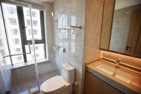 從房間和臥室,還可以看到不遠處的黃浦江風光。完全實現了拎包入住。