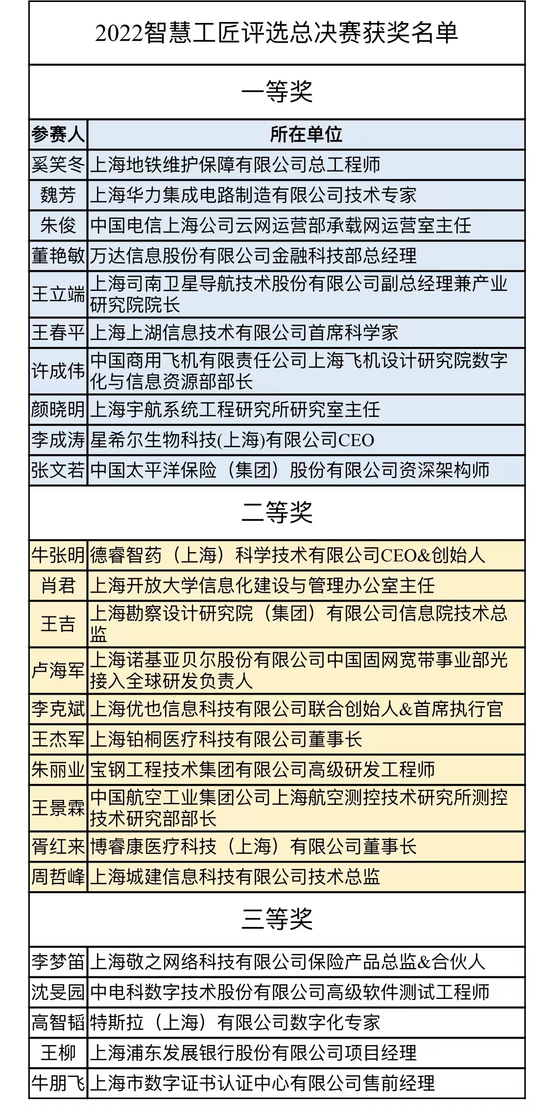 最終,在上海城市數字化轉型“智慧工匠”選樹總決賽中,上海地鐵維護保障有限公司總工程師奚笑冬、上海華力集成電路制造有限公司圖形增強部部長魏芳、中國電信上海公司云網運營部承載網運營室主任朱俊等10名候選人“殺出重圍”,獲得2022上海城市數字化轉型“智慧工匠”選樹總決賽一等獎,后續經過組委會審議、公示、信用審核等程序,將正式確定2022上海城市數字化轉型“智慧工匠”以及提名人選。上海市總工會副主席周奇、中共上海市經濟和信息化工作委員會副書記張義出席決賽頒獎儀式。