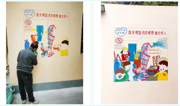 在一旁的墻面上,社區居民自創自繪了一幅宣傳畫,內容豐富、通俗易懂,使得文明新風深入人心?!拔⑿拖勒尽鄙壐脑煲院?,不僅能夠方便附近居民和小區應急人員在發生火情時及時撲滅火災,還能向社區居民和青少年普及消防安全知識,提高消防安全意識。