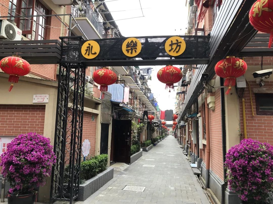 綠意盎然的迎賓花卉盆栽、明亮統一的標識標牌、寬敞大方的公共休閑區……在四川北路街道永樂坊,這條91歲的上海老弄堂,