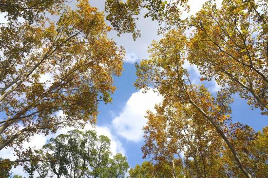 色葉樹種的景觀道正在逐漸變色中,目前大家可以到公園內觀賞到銀杏、懸鈴木、烏桕等樹葉的葉片變色的情況。