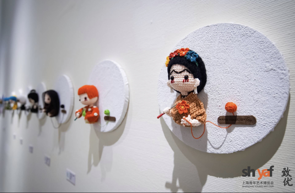 第八屆上海青年藝術博覽會開展首日,90后的王珊珊眼疾手快,買下了自己人生中的第一件收藏級藝術品——《與大師一起玩毛線——弗里達》。這件由青年藝術家張聶聶創作的毛線裝置品,制作精良,創意滿滿,定價僅為幾百元?!拔曳浅O矚g弗里達,一眼就看中了這件作品。用手機掃描作品旁的二維碼時,這個價格大出所料,我果斷買下?!蓖跎荷赫f。