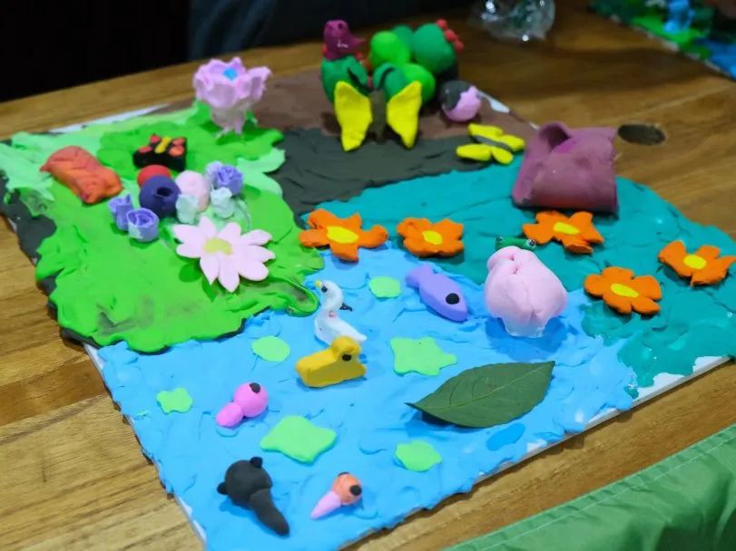 戶外的調查激發了大家搭建“小動物的家”的愿望和興趣,小朋友們迫不及待地回到活動室,拿起五顏六色的橡皮泥,在揉、搓、捏、壓中把動物的理想棲息地搭建起來了。
