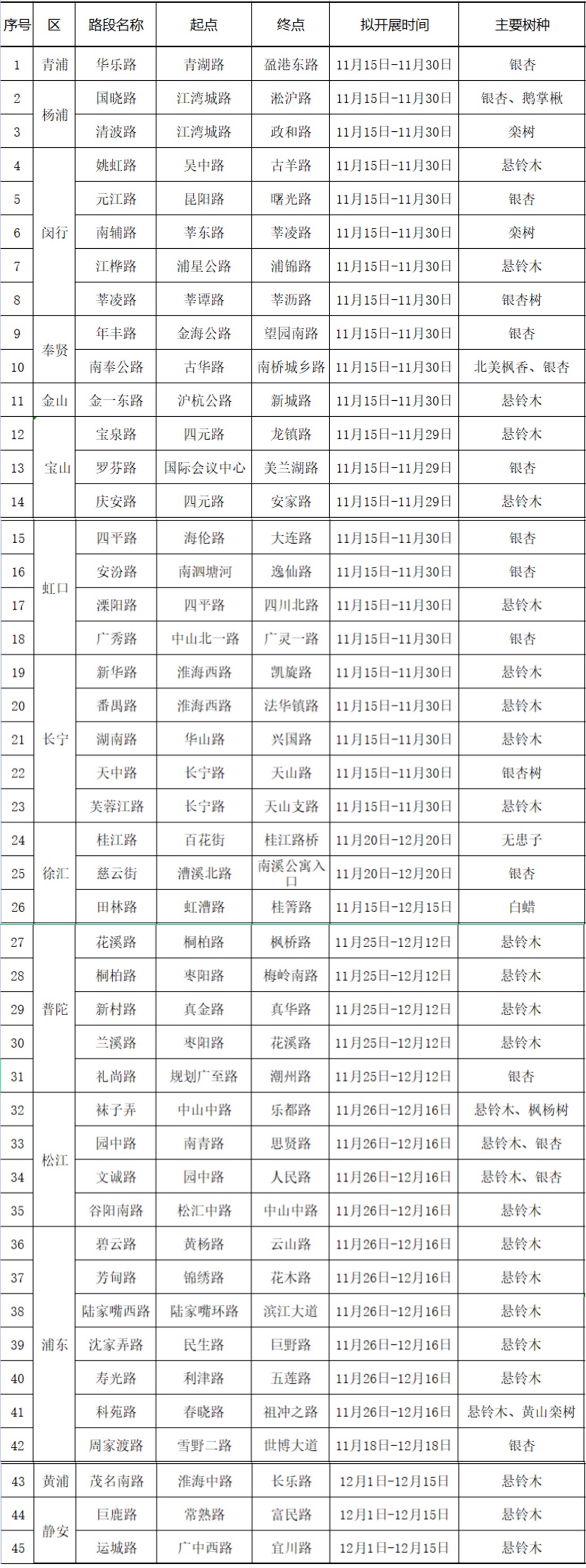 11月15日,上海市綠化市容局公布今年全市45條“落葉不掃”景觀道,總量比去年多出4條。